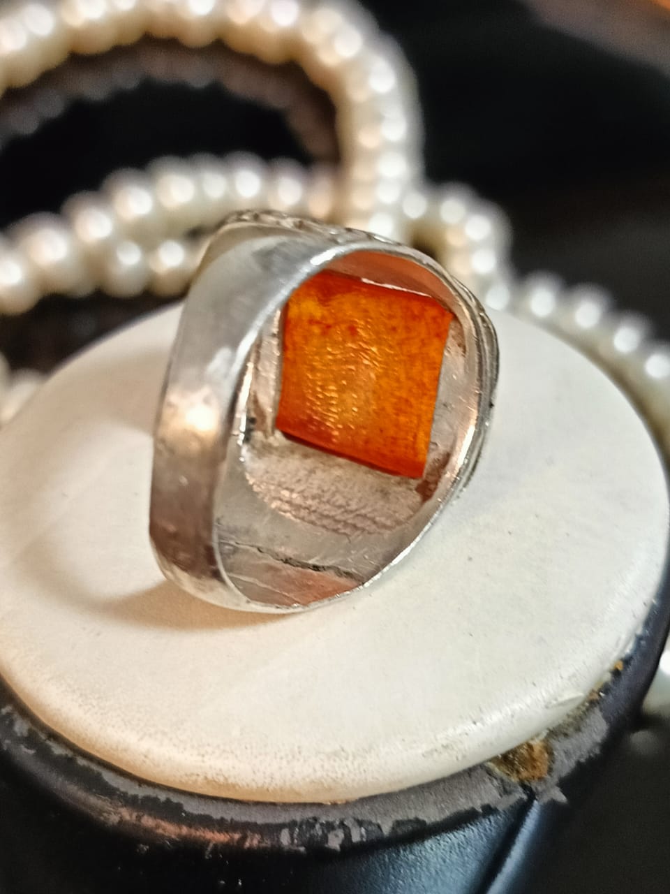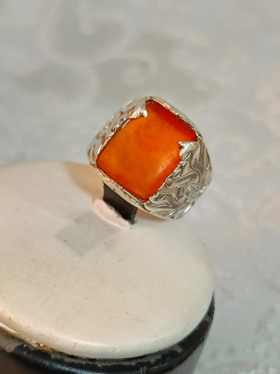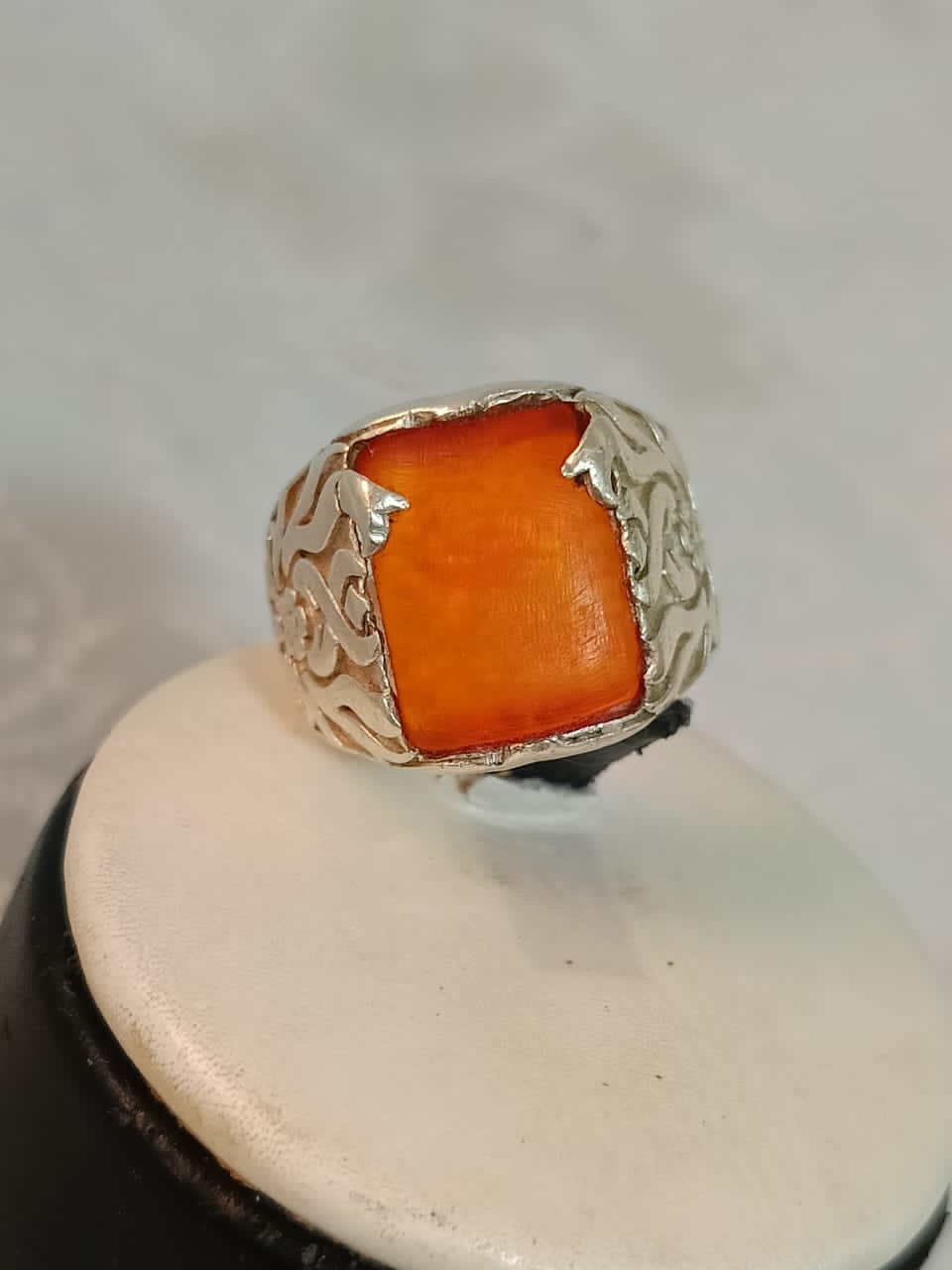 خاتم فضة بحجر كهرمان