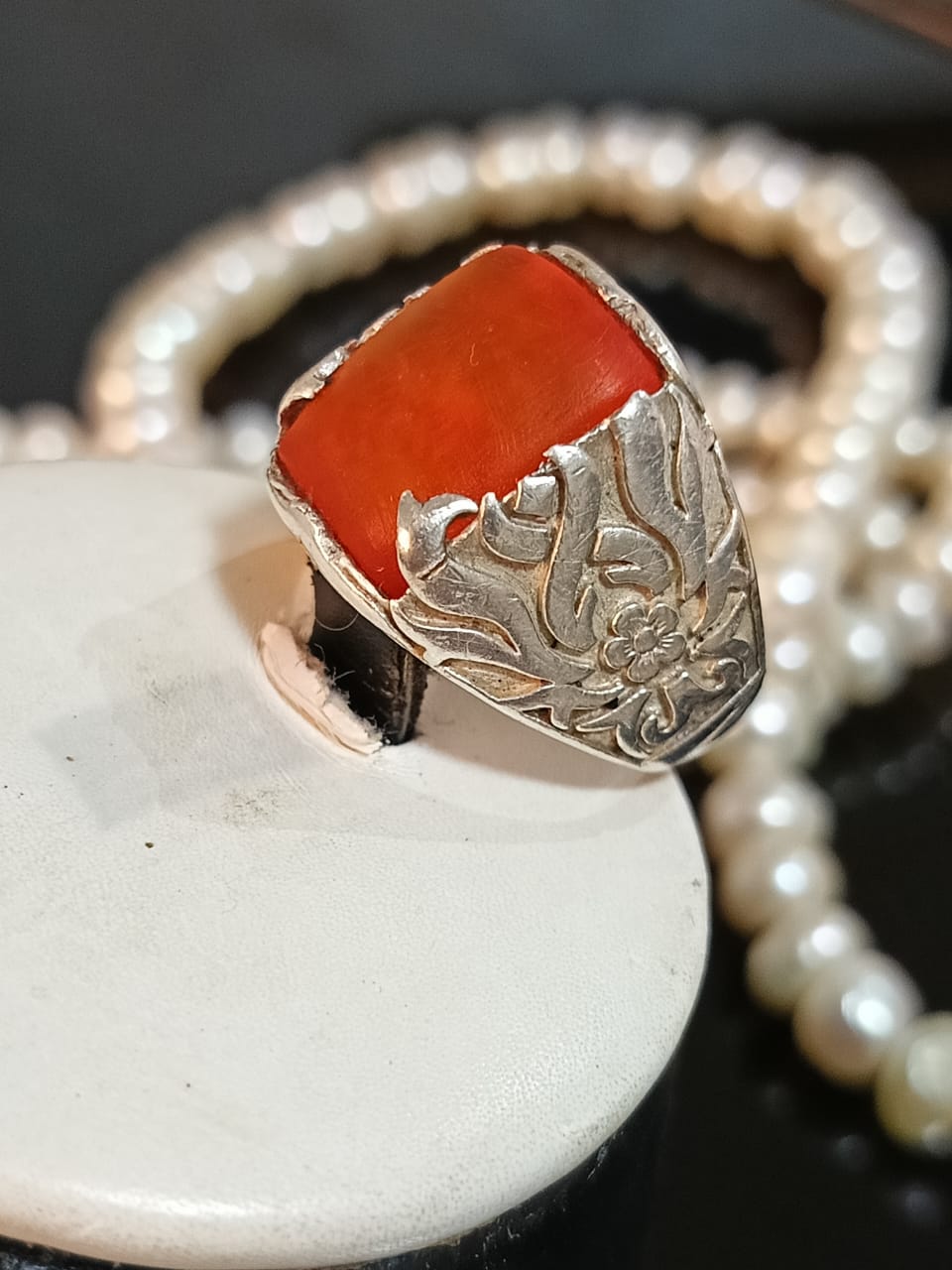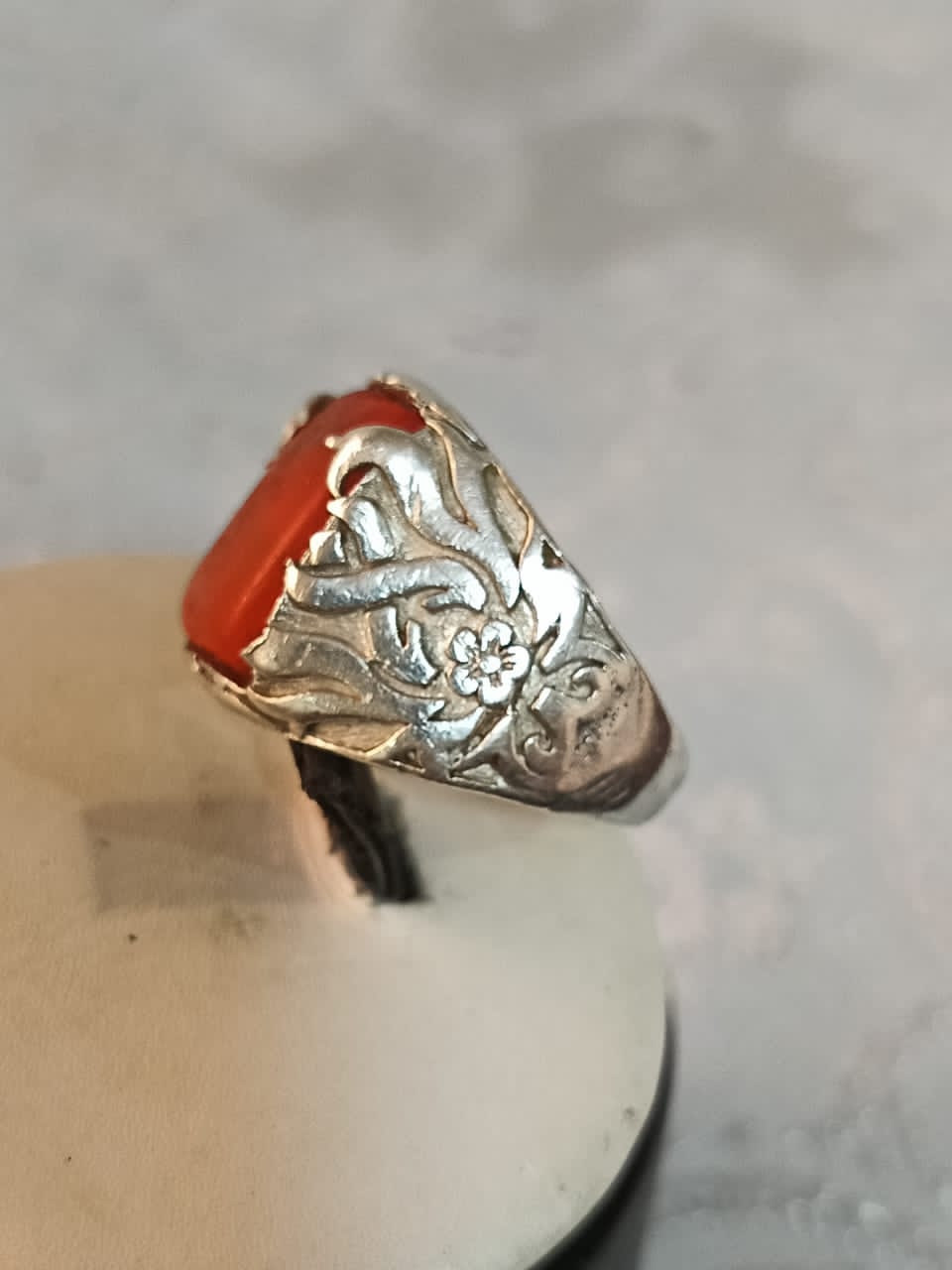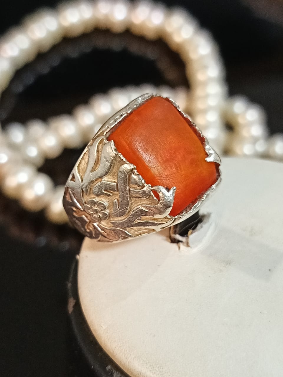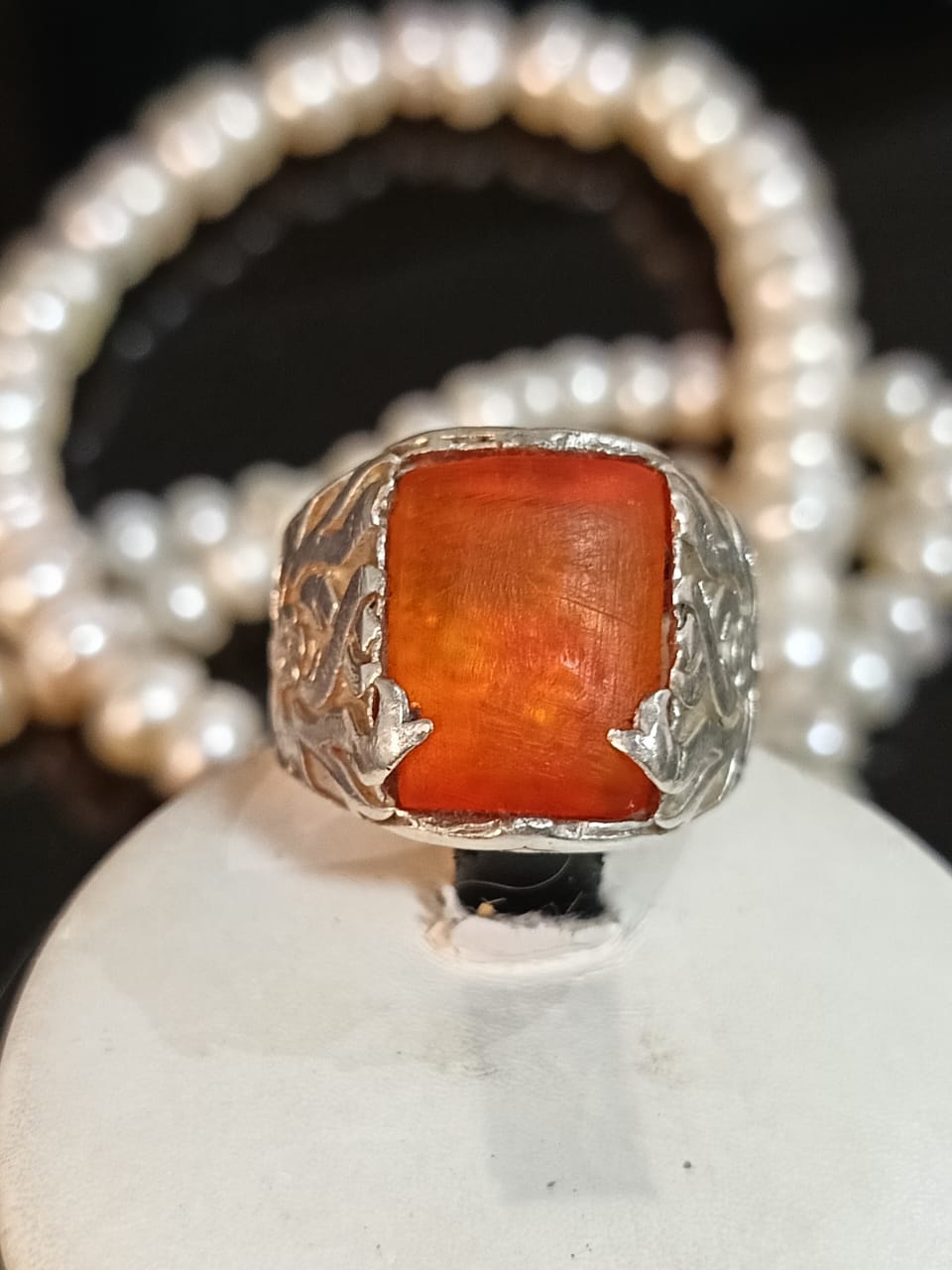 خاتم فضة بحجر كهرمان
