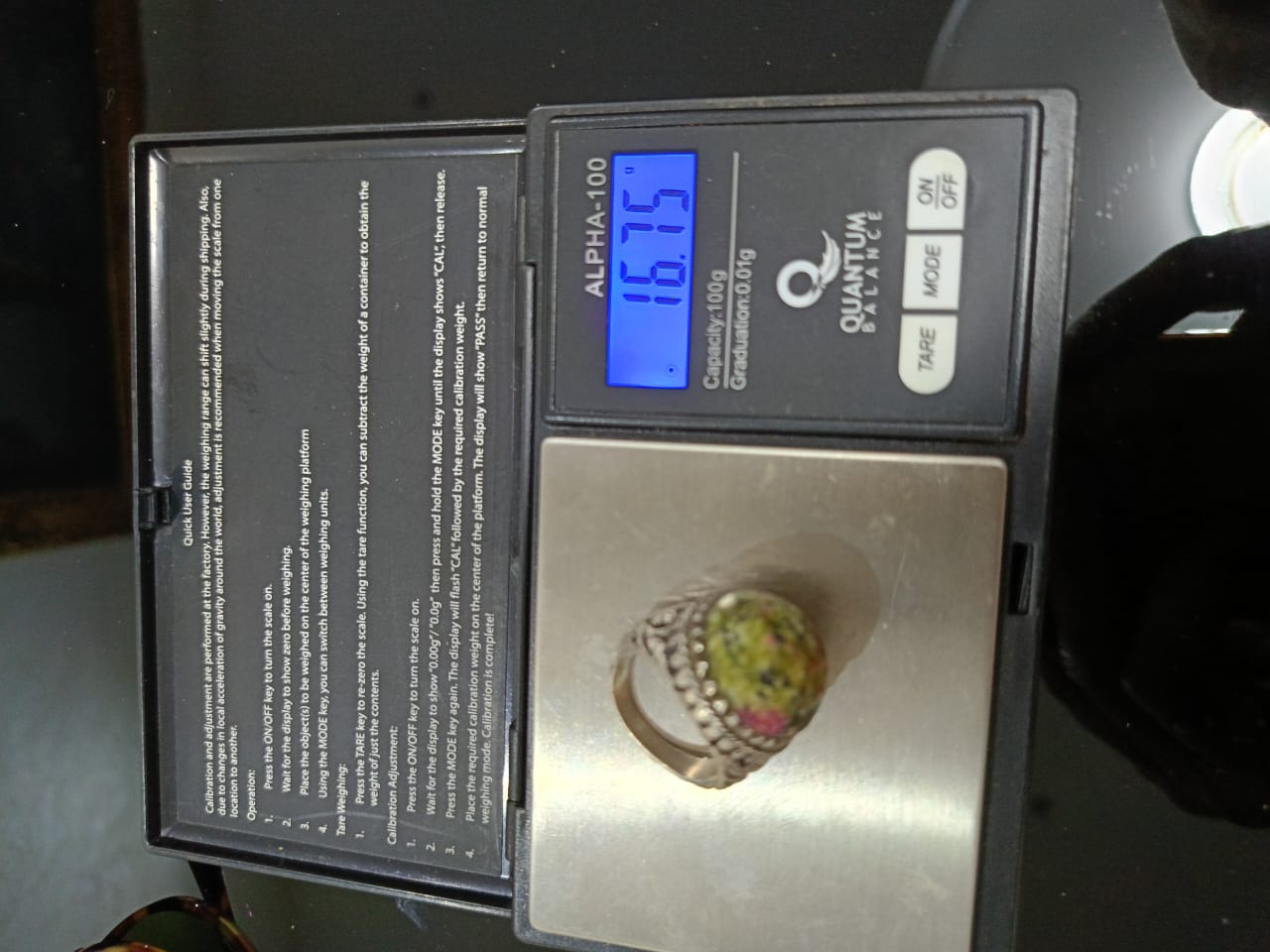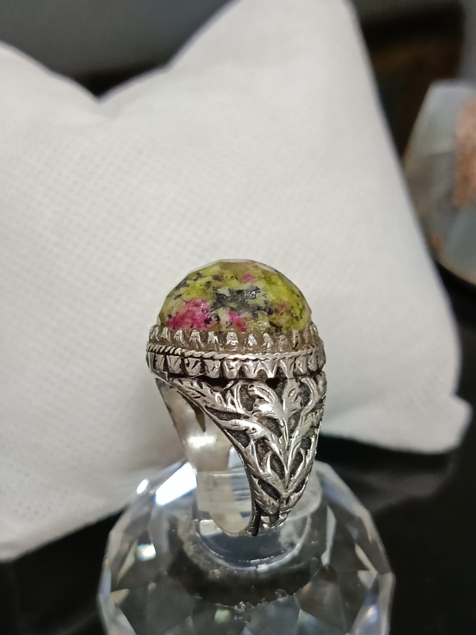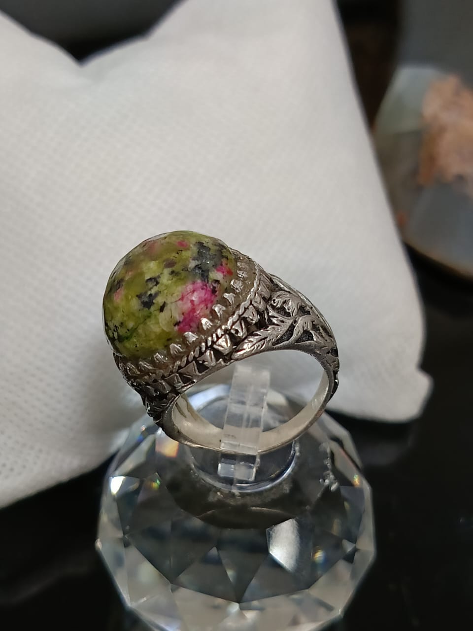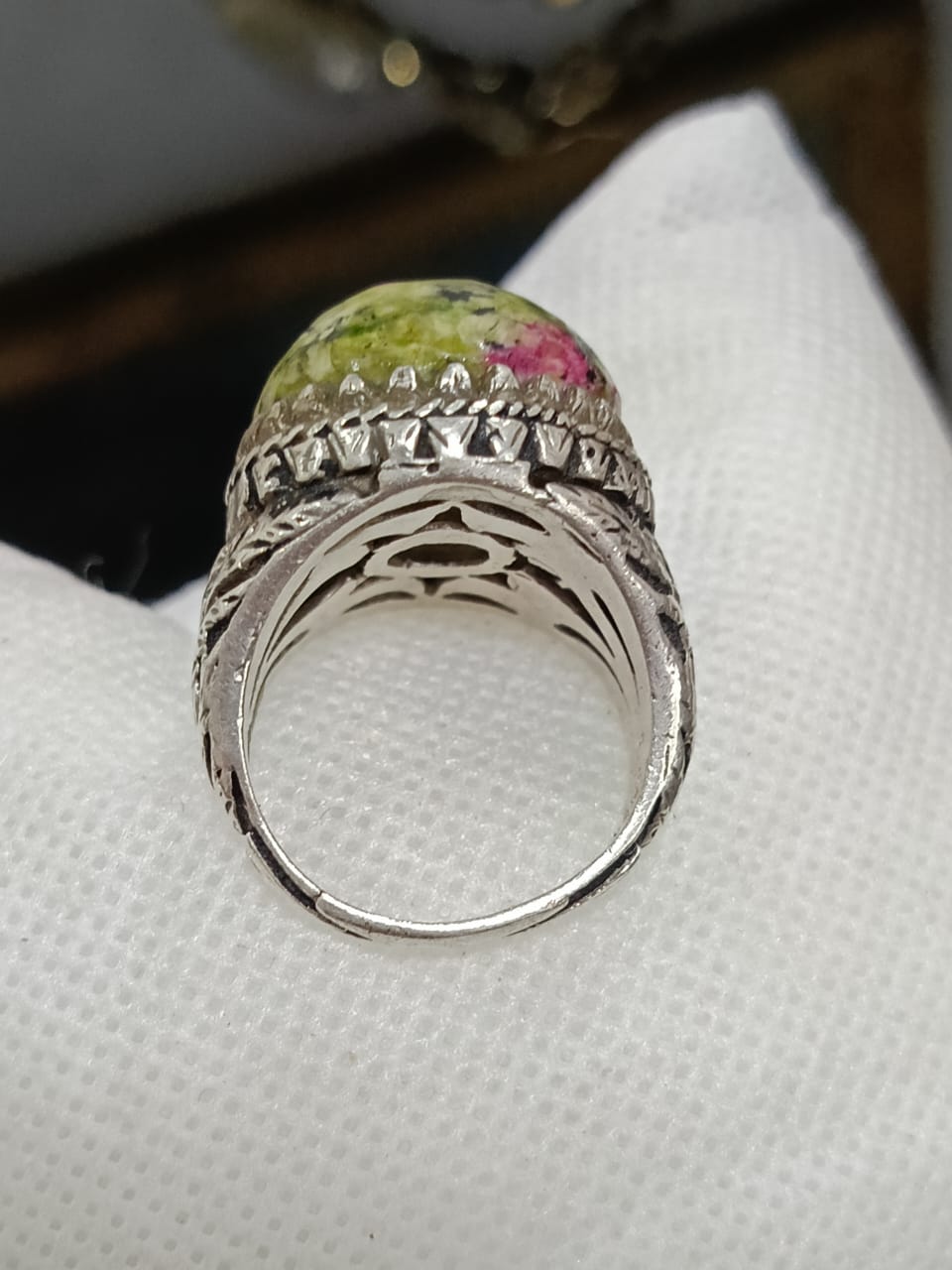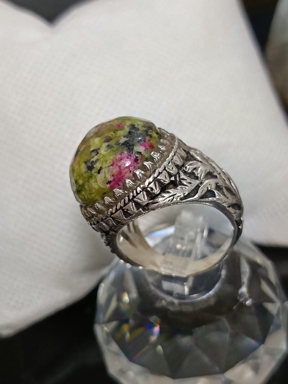 خاتم فضة بحجر طبيعي صلب